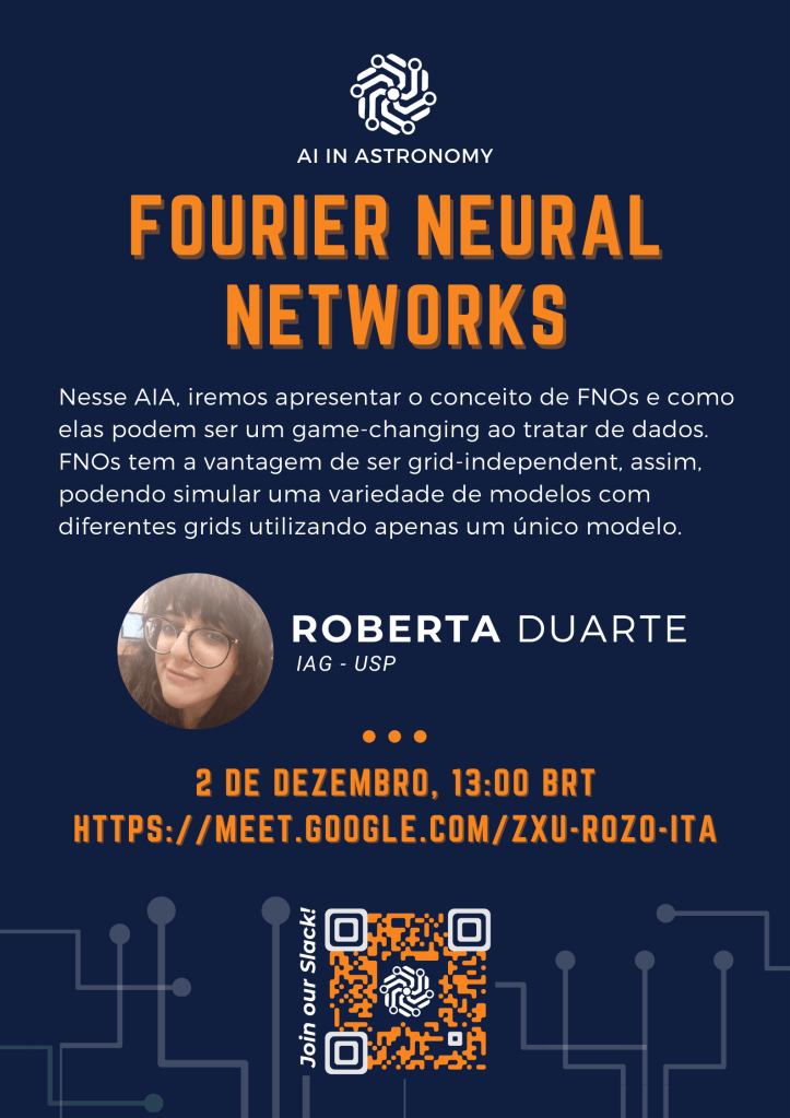 Abstract: Nesse AIA, iremos apresentar o conceito de FNOs e como elas podem ser um game-changing ao tratar de dados. FNOs tem a vantagem de ser grid-independent, assim, podendo simular uma variedade de modelos com diferentes grids utilizando apenas um único modelo.